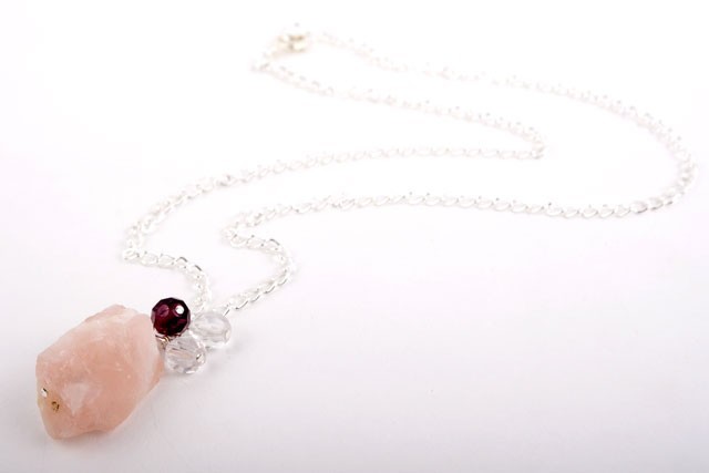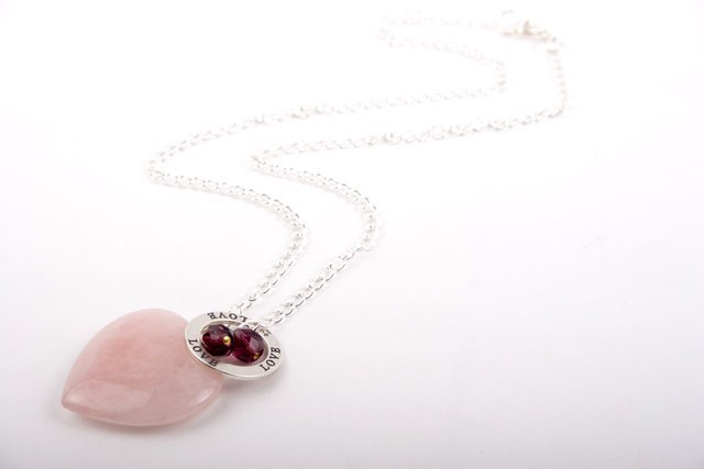 Rose Quartz and Silver Heart Charm Necklace
